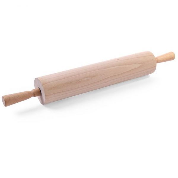 Скалка для раскатывания теста, деревянная, имеет две удобные ручки. Ширина рабочей поверхности - 395 мм.