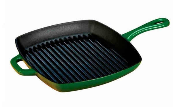 Корпус и ручка изготовлены из чугуна, который очень прочный и долговечный. Также чугун - это экологически чистый и безопасный материал, который не выделяет токсичных веществ в процессе жарки.