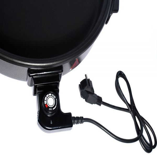 Сковорода электрическая имеет плоскую обогреваемую рабочую поверхность, которая нагревается за счет встроенных и равномерно распределенных, в нижней части оборудования, ТЭНов. Такое расположение электронагревательного элемента способствует однородности температуры по всей поверхности сковородки, благодаря чего происходит правильное приготовление блюда и экономия электроэнергии.