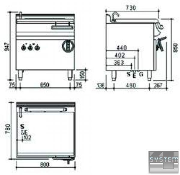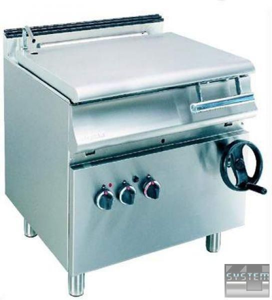 Основная часть сделана из сатинированного хромоникелевого листа 18/8 н/с, каркас толщиной 2 мм. Покрытие с двойными стенками специально разработано для упрочнения. Равномерное распространение тепла и сохранение тепла в период долгого времени обеспечивается посредством приваренного второго металлического дна к котлу. Благодаря специальному опрокидному механизму котел легко опрокидывается, и угол опрокидывания составляет 85 ° . Втулка для наполнения или чистки котла. Температура регулируется в пределе 50-300 °C посредством многоуровневого термостата. Может использоваться СНГ или ПГ (природный газ), и преобразование происходит без какой-либо модификации. Оснащен газовым вентилем, растопочным факелом и термореле, в случае отключения газа газовый вентиль прекращает подачу газа. Газовая горелка разработана для использования газа различного типа. Кнопка автоматического зажигания. Ограничительный термостат автоматически прекращает подачу энергии в случае возникновения неполадки. Механизм переключения прекращает подачу энергии во время опрокидывания котла.