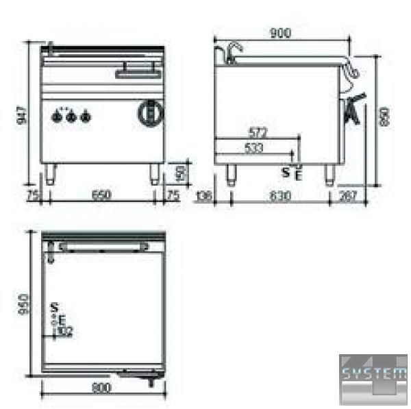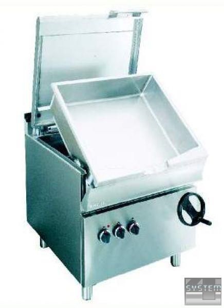 Основная часть сделана из сатинированного хромоникелевого листа 18/8 н/с, каркас толщиной 2 мм. Покрытие с двойными стенками специально разработано для упрочнения. Равномерное распространение тепла и сохранение тепла в период долгого времени обеспечивается посредством приваренного второго металлического дна к сковороде. Благодаря специальному опрокидному механизму сковорода легко опрокидывается, и угол опрокидывания составляет 85 ° . Втулка для наполнения или чистки сковороды. Температура регулируется в пределе 50-300 °C посредством многоуровневого термостата. Ограничительный термостат автоматически прекращает подачу энергии в случае возникновения неполадки. Механизм переключения прекращает подачу энергии во время опрокидывания сковороды. Все электрические приборы и механизмы соответствуют международным стандартам.