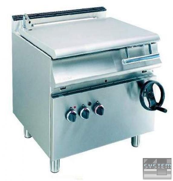 Основная часть сделана из сатинированного хромоникелевого листа 18/8 н/с, каркас толщиной 2 мм. Покрытие с двойными стенками специально разработано для упрочнения. Равномерное распространение тепла и сохранение тепла в период долгого времени обеспечивается посредством приваренного второго металлического дна к сковороде. Благодаря специальному опрокидному механизму сковорода легко опрокидывается, и угол опрокидывания составляет 85 ° . Втулка для наполнения или чистки сковороды. Температура регулируется в пределе 50-300 °C посредством многоуровневого термостата. Может использоваться СНГ или ПГ (природный газ), и преобразование происходит без какой-либо модификации. Оснащен газовым вентилем, растопочным факелом и термореле, в случае отключения газа газовый вентиль прекращает подачу газа. Газовая горелка разработана для использования газа различного типа. Кнопка автоматического зажигания. Ограничительный термостат автоматически прекращает подачу энергии в случае возникновения неполадки. Механизм переключения прекращает подачу энергии во время опрокидывания сковороды.