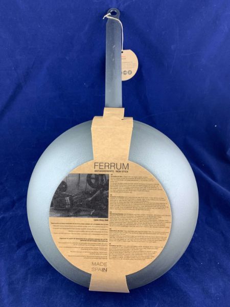 Сковорода с антипригарным покрытием и ручка изготовлены из твёрдого стального сплава.