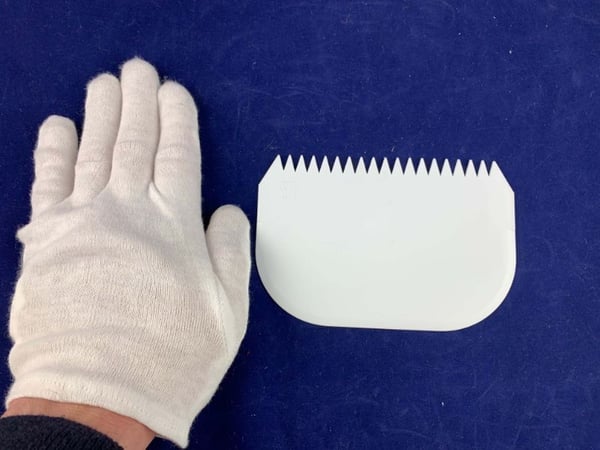 Полукруглый скребок для теста зубчастый- это профессиональный кондитерский инвентарь для кафе, ресторанов, кондитерских и других заведений общественного питания.