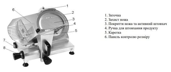 Обратите внимание! Оборудование не разрешается использовать для нарезки продуктов, замороженных в твердое состояние. Необходимо чистить и обеззараживать каждый день, а ножи несколько раз в течение дня.