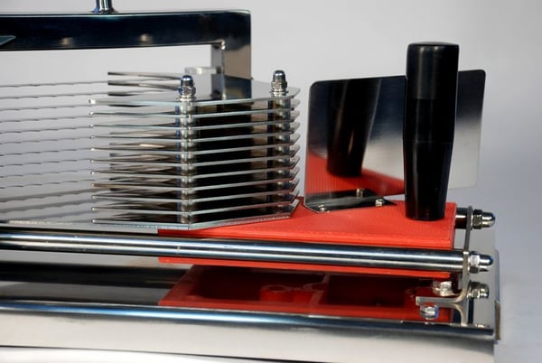 Расстояние между лезвиями для нарезки 5 мм. Можно нарезать томаты, лимоны, яблоки и другие фрукты и овощи круглой формы.