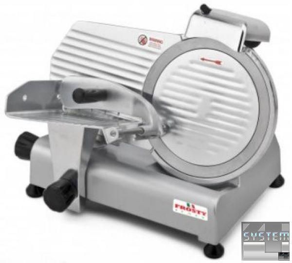 Слайсер (ломтерезка) FROSTY MS250 ST - используется для нарезки ветчин, хлеба, овощей, сыров и других продуктов ломтями необходимой толщины в ресторанах, барах и больших супермаркетах. Простота в использовании и безопасность этих приборов сделали их очень популярными. Но все же, главное достоинство промышленных слайсеров – сокращение в несколько раз времени, потраченного на нарезку. Электроножу потребуется всего 2,5 – 3,5 минуты на нарезку одного батона сырокопченой колбасы. Такая операция не потребует каких-либо серьезных физических затрат и будет выполнена просто идеально. Профессиональный слайсер режет продукты кусочек к кусочку, очень ровно. Задавая каждому продукту свою толщину нарезки, возможно точно рассчитать в граммах выход любого продукта. Электронож легко настраивается на резку разных продуктов со своей толщиной. Принцип работы гастрономической машины очень прост. Продукт освобождается от упаковки и кладется на рабочую поверхность. При помощи каретки передвигается навстречу дисковому ножу, который отрезает от продукта кусок заданной толщины. После этого, вернув каретку на исходную позицию, снова повторяют ту же последовательность действий до тех пор, пока продукт не будет нарезан в необходимом количестве.