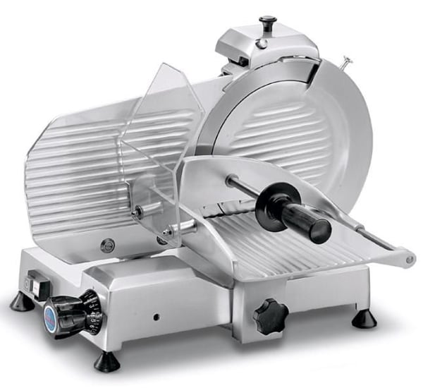 Ломтерезка оснащена прозрачным защитным экраном, выполненым из акрила, который защищает руки работника от режущего диска. Большое расстояние между двигателем и лезвием для более удобной очистки. Профессиональная версия СЕ с разблокированием на каретке.
