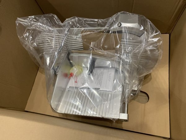 Ломтерезка оснащена прозрачным защитным экраном, выполненым из акрила, который защищает руки работника от режущего диска. Большое расстояние между двигателем и лезвием для более удобной очистки.