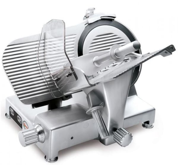 Ломтерезка с ручной подачей предназначен для нарезания гастрономических товаров, толщиной нарезки от 0 до 13 мм. Благодаря регулировке толщины нарезки можно самому определять желаемую толщину, а также без труда рассчитывать выход товара в граммах. Основное применения слайсера супермакеты, бары, на профессиональных кухнях ресторанов.