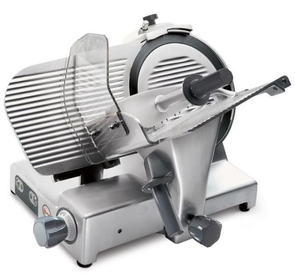 Ломтерезка с ручной подачей предназначен для нарезания гастрономических товаров, толщиной нарезки от 0 до 13 мм. Благодаря регулировке толщины нарезки можно самому определять желаемую толщину, а также без труда рассчитывать выход товара в граммах. Основное применения слайсера супермакеты, бары, на профессиональных кухнях ресторанов.