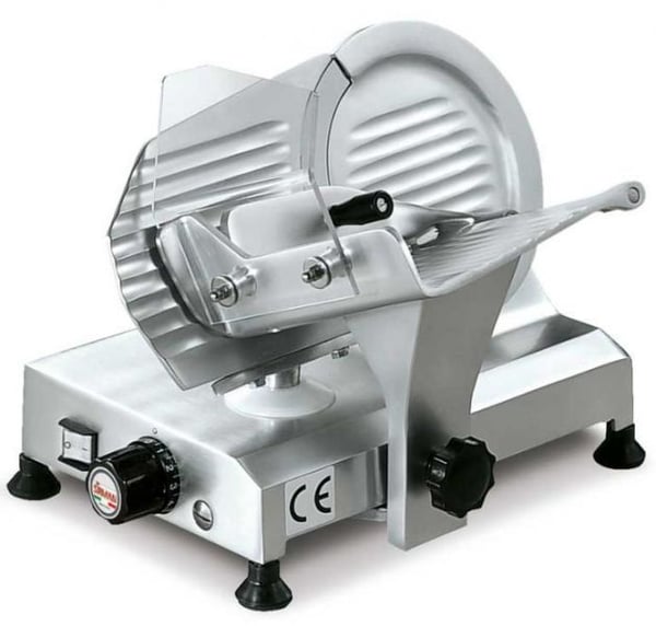 Полуавтоматический слайсер (ломтерезка), с ручной подачей предназначен для нарезки сыра, мяса, колбасных изделий, других продуктов питания и обеспечивает точную и быструю нарезку на ломтики определенной толщины. Незаменим на любой профессиональной кухне ресторана, особенно в холодных цехах по производству холодных блюд, салатов и закусок, супермаркетах, барах.
