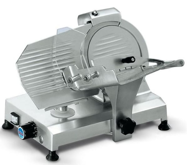 Полуавтоматический слайсер (ломтерезка), с ручной подачей предназначен для нарезки сыра, мяса, колбасных изделий, других продуктов питания и обеспечивает точную и быструю нарезку на ломтики определенной толщины. Незаменим на любой профессиональной кухне ресторана, особенно в холодных цехах по производству холодных блюд, салатов и закусок, супермаркетах, барах.
