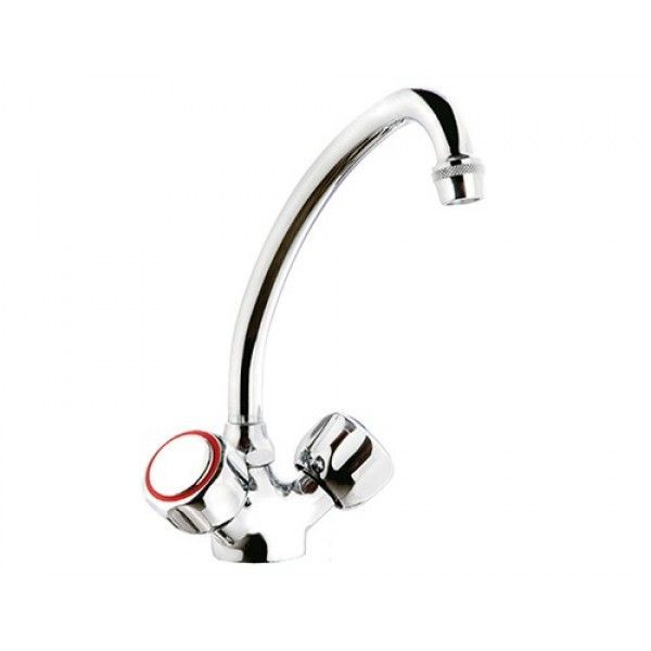 С поворотным краном и 2 смесительными клапанами на горячую и холодную воду
