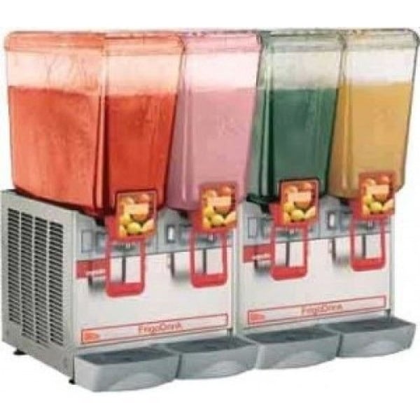 В сокоохладителе четыре 12-литровых резервуара с краном для легкого порционирования. Колбы изготовлены из прозрачного пищевого поликарбоната, они легко снимаются, что значительно облегчает чистку, корпус изготовлен из высококачественной нержавеющей стали.