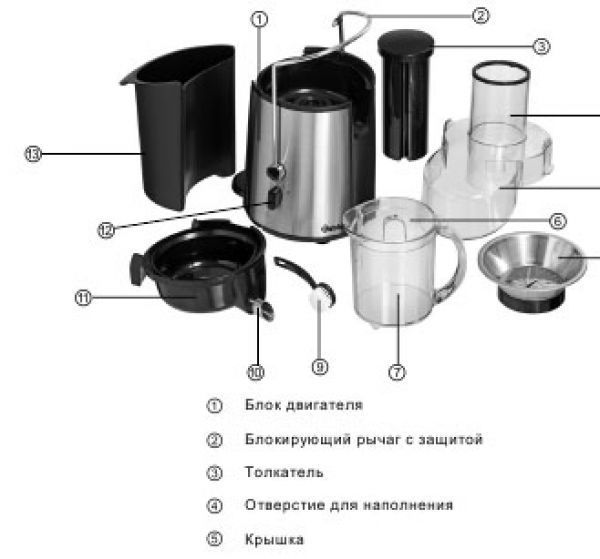 В комплект поставки входят щётка и контейнеры для сока и отходов объем - 1 литр.