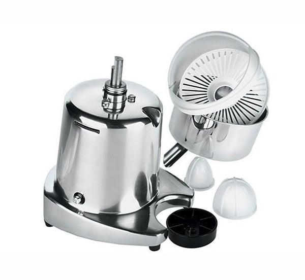 Профессиональная соковыжималка имеет корпус двигателя из легкого сплава и асинхронный двигатель с непрерывным режимом работы, с вентиляторным охлаждением с предохранительным вырезом обеспечивают производительность и надежность. Широкая секция разливного желоба позволяет быстро дозировать сок и облегчает чистку.