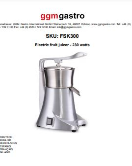 Общие характеристики соковыжималки GGM FSK300
