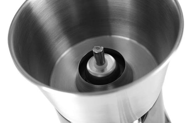Особая форма конуса увеличивает срок службы оборудования. Используя центробежную силу увеличивает выход сока. Получаемый сок не окисляется, имеет первозданный вкус. Микропереключатель, расположенный сбоку соковыжималки, безопасный и надежный.