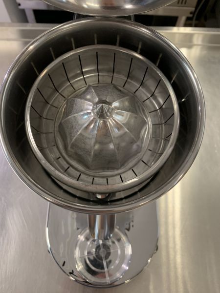 Конус для выжимания сока и решётка являются одним целым, это позволяет выжимать цитрусовый с максимальным результатом. Микровыключатель на конусе, который позволяет включать машину, нажимая на него. Аппарат оснащен прижимной крышкой.