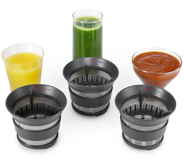 Три разных фильтра: мелкий, крупный, для соусов и джемов, что позволяет готовить соки, соусы, муссы и желе.