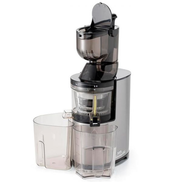 Терочный диск соковыжималки изготовлен из нержавеющей стали AISI 304. Соковыжималка оснащена 3 ситами с отверстиями различной величины, специальным бункером, который облегчает загрузку более крупных плодов, высокоэффективным шнеком.