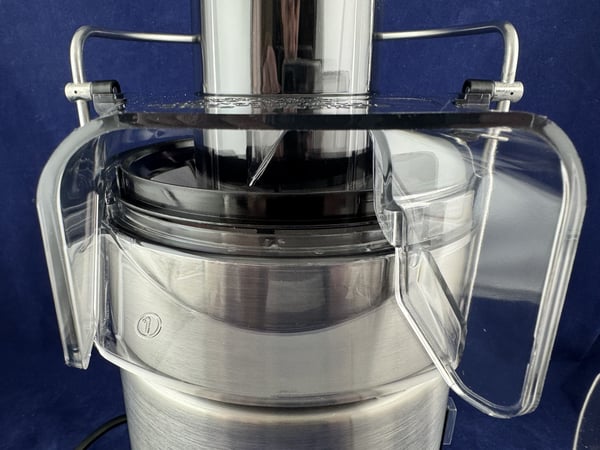 Электрическая соковыжималка выполнена в корпусе из нержавеющей стали.