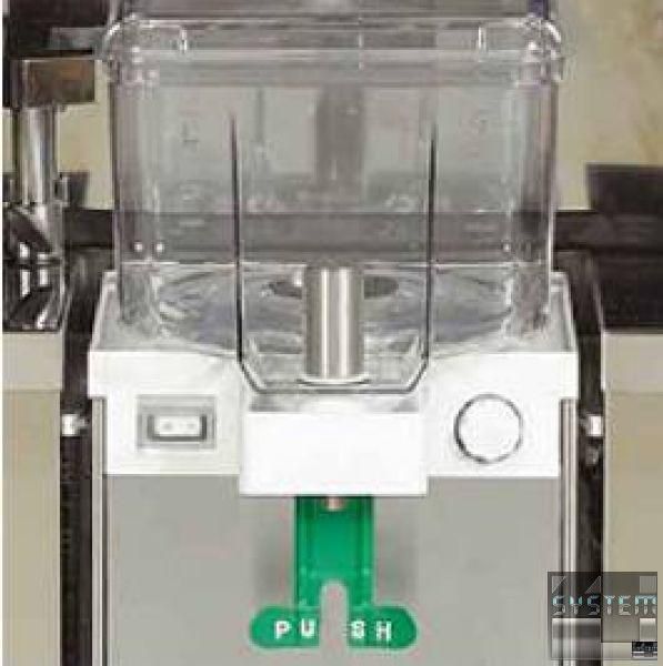 Кожура автоматически сбрасывается в большой пластиковый бак, расположенный в нижней части тумбы. Сокоохладитель автоматически поддерживает заданную температуру сока. Уровень сока в резервуаре сокоохладителя, контролируется регулируемым оптическим сенсором. При понижении уровня, процесс отжима автоматически запускается. Тумба-бункер изготовлена из нержавеющей стали и снабжена колесами с фиксаторами. Может использоваться не только как соковыжималка для апельсинов и других цитрусовых, но и как соковыжималка для гранатов.