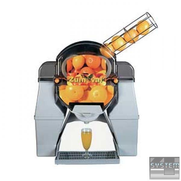 Автоматическая совыжималка для апельсин и других цитрусовых. Настольная модель. Производительность 1.8 литров в минуту. Позволяет осуществлять отжим грейпфрутов. Рассчитана на отжим плодов калибра 70-95 мм. Вместимость подающего рукава 4 плода. Вместимость бункера для отходов 20 кг. Предохранительная система для предупреждения перегрева и переполнения машины Дополнительно возможен заказ следующих опций: исполнение в оранжевом цвете, счетчик отжатых плодов.
