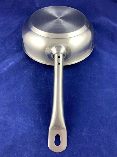 Дно тройное термодиффузионное по типу "сэндвич", имеет сплав сталь-алюминий-сталь, что является благоприятным фактором для лучшей и быстрой теплоотдачи. У сотейника длинная полая ручка из нержавеющей стали с многоточечным креплением. Ручка не нагревается, поэтому невозможно получить ожог. Сотейник устойчив к коррозии и воздействию кислот.