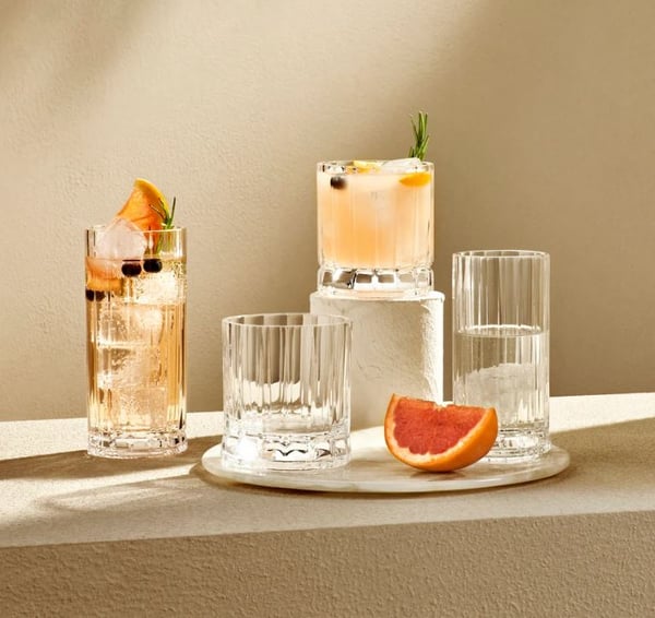 Позиции коллекции барного стекла Wayne NUDE отличаются четкими вертикальными гранями, придающими элегантность и объем.