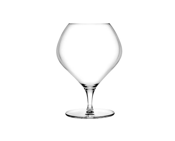 Элегантно суженная ножка с вместительной грушевидной чашей с едва заметными углублениями внизу, придающими стакану изящной игривости.