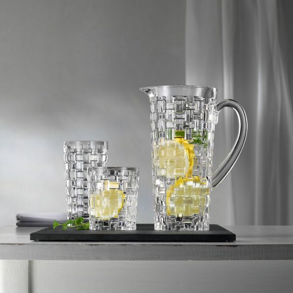Хрустальный стакан серии Bossa Nova выполнен с текстурным рисунком плетеной ткани и он подойдет для подачи безалкогольных, крепких напитков, виски, бренди.