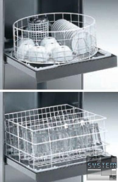 Поставляется в комплекте: 2 корзины для стаканов, одна - для столовых приборов, одна вставка для тарелок.