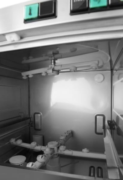 Посудомоечная машина для ресторана оборудована двойной дверью с изоляцией, данная конструкция уменьшает потеря тепла, позволяя экономить электроэнергию и уберегая персонал от ожогов. Для плотного прилегания к корпусу дверь уплотнена магнитной вставкой.