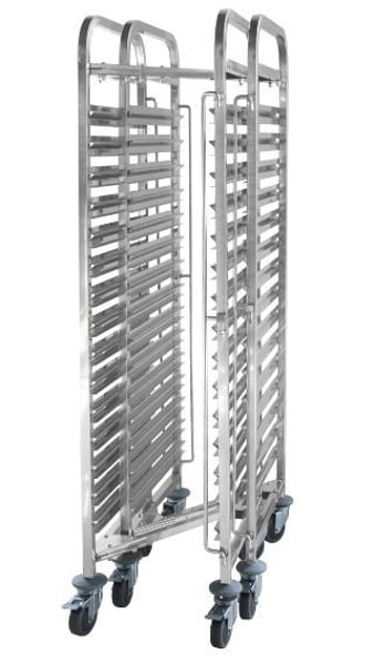 Шпилька для противней оборудована 4-мя поворотными колесами, два из них с тормозным устройством - способствует его удобной мобильности.