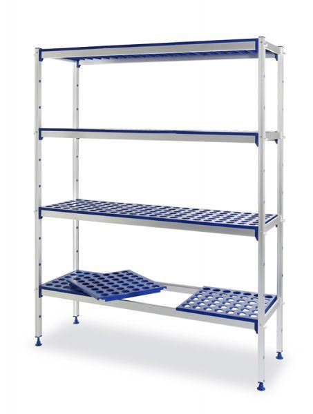 Рама стеллажа изготовлена из анодированного алюминия, который по своим свойствам считается легким, прочным и долговечным. Полки из полипропилена, которые можно мыть в посудомоечной машине.