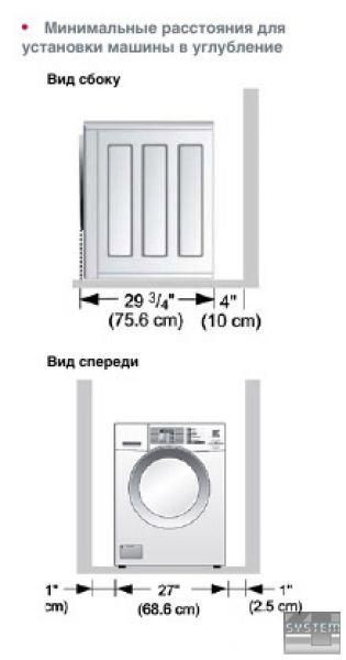 • Минимальные расстояния для Машина устанавливается таким образом, чтобы установки машины в углубление
