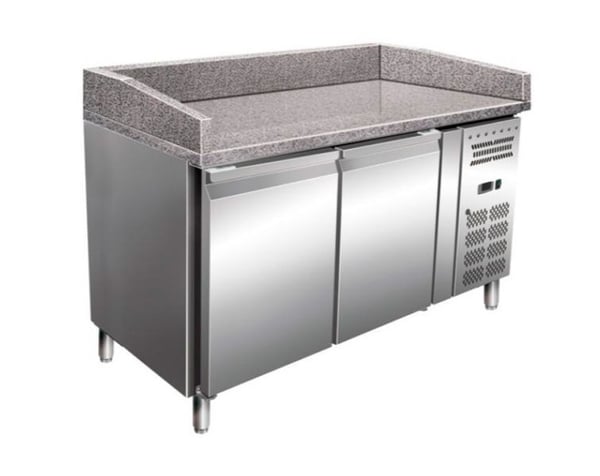 Внутри стола хранятся тестовые заготовки и проходят процесс ферментации, на гранитной столешнице готовят краст и укладывают начинку, а в охлаждаемой витрине хранится сама начинка. Это очень удобное и необходимое профессиональное оборудование на кухне любого ресторана, кафе, бара и больших предприятиях.
