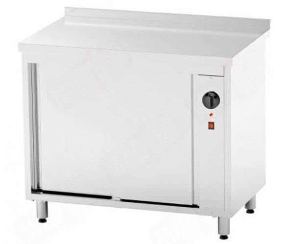Конструкция теплового стола серии PTHC представляет собой закрытый стол из высококачественной нержавеющей стали с пристеночным бортиком 50 мм. Двери-купе, столешница с наполнением из ДСП плит.