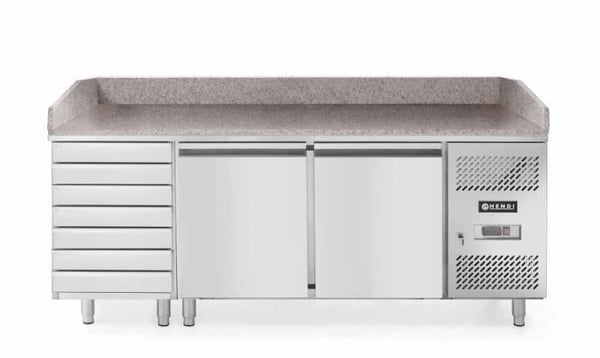 Для данного стола подойдет топпинг-витрина Hendi 232996 для 9 емкостей GN1/3, Н=150 мм (емкостями не комплектуется) - предназначена для размещения и хранения топпингов для пиццы.Цельно – заливной, толщина изоляции – 60 см (материал: C5H10 - циклопентан). Таким образом уменьшается потеря холода, позволяя экономить электроэнергию. Боковые стенки сделаны из нержавеющей стали AISI 430, задняя стенка - из оцинкованной стали.