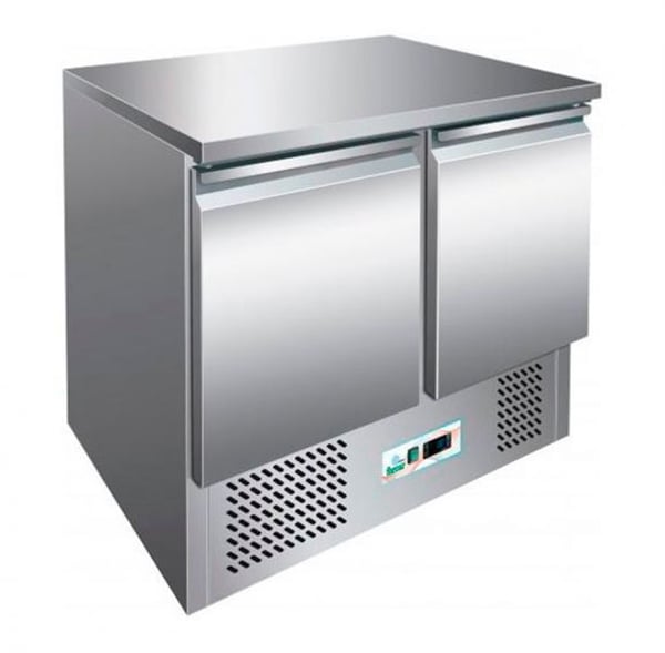 Стол холодильный с двумя распашными дверьми с возвратным механизмом, также подогрев по контуру двери препятствует образования конденсата. Встроенный агрегат снизу, который легко извлекается для обслуживания оборудования.