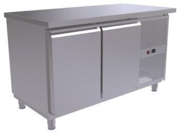 Стол холодильный с двумя распашными дверьми с возвратным механизмом, также подогрев по контуру двери препятствует образования конденсата. Нижнее расположение компрессора. Встроенный агрегат, извлекаемый для обслуживания, а также открытие передней панели ключом.