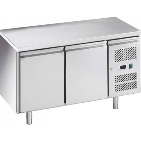 Стол холодильный с двумя распашными дверьми с возвратным механизмом, также подогрев по контуру двери препятствует образования конденсата. Встроенный агрегат, который легко извлекается для обслуживания оборудования.