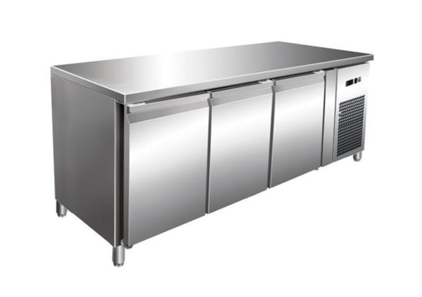 Стол морозильынй с тремя распашными дверьми с возвратным механизмом, также подогрев по контуру двери препятствует образования конденсата. Встроенный агрегат, который легко извлекается для обслуживания оборудования.