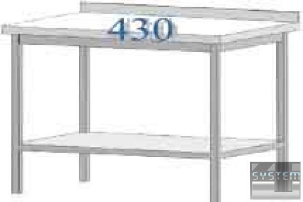 Рабочая поверхность столов из высококачественной нержавеющей стали AISI 430. По ГОСТу 5632 (Коррозионно-стойкая и жаропрочная сталь (нержавеющая)), сталь марки 430 рекомендуется к использованию, в качестве заменителя стали 304 марки, в том числе для изготовления посуды и оборудования для пищевой промышленности методом вытяжки или прессования, а так же изготовление деталей и конструкций общетехнического назначения. Изделия из данной марки стали хорошо зарекомендовали себя при эксплуатации в среде повышенных температур (детали теплового оборудования, надплитная посуда и др.). Регулируемые по высоте опоры ног. Борта высотой 50 мм. Высота столов 850 мм.