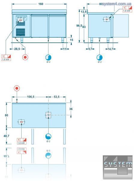 Несущая конструкция из нержавеющей стали AISI 304 с 55-ти мм толщиной изоляционного материала, предназначена для противней размером 60 x 40 см. Имеются в наличии модели без рабочей столешницы, с односторонней рабочей столешницей или с односторонней рабочей столешницей и пристенком. Высота рабочей столешницы 50 мм, структура из нержавеющей стали AISI 304 толщиной 15/10 мм со звукопоглащающей водоотталкивающей и огнестойкой подстолешницей