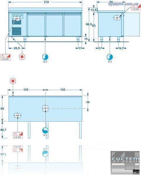 Несущая конструкция из нержавеющей стали AISI 304 с 55-ти мм толщиной изоляционного материала, предназначена для противней размером 60 x 40 см. Имеются в наличии модели без рабочей столешницы, с односторонней рабочей столешницей или с односторонней рабочей столешницей и пристенком. Высота рабочей столешницы 50 мм, структура из нержавеющей стали AISI 304 толщиной 15/10 мм со звукопоглащающей водоотталкивающей и огнестойкой подстолешницей