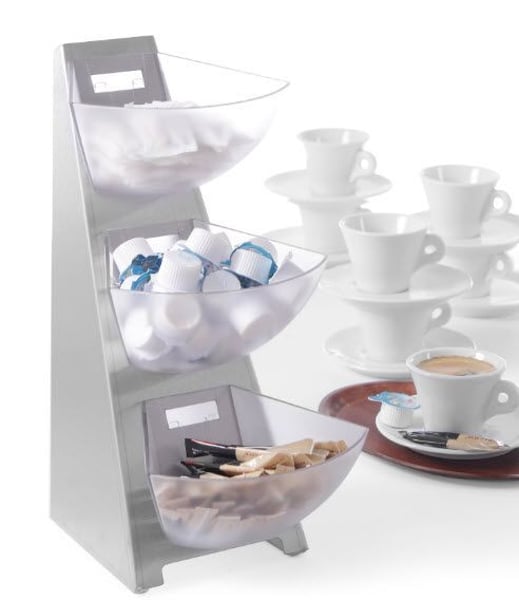Диспенсер для буфета Хенди гармонично подойдет для гигиеничной выкладки стиков со сахаром, солью, перцем, порционных сливок.