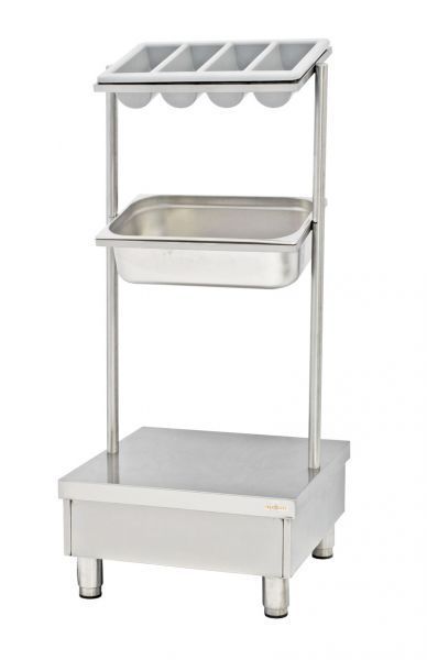 Стойка для столовых приборов позволяет на небольшом пространстве разместить столовые приборы, подносы, хлеб, салфетки, стаканы. Изготовлена из нержавеющей стали AISI 304, регулируемые опоры. Данные стойка для вилок и стойка для ложек— станут Вам надёжным другом и помощником в Вашем бизнесе.